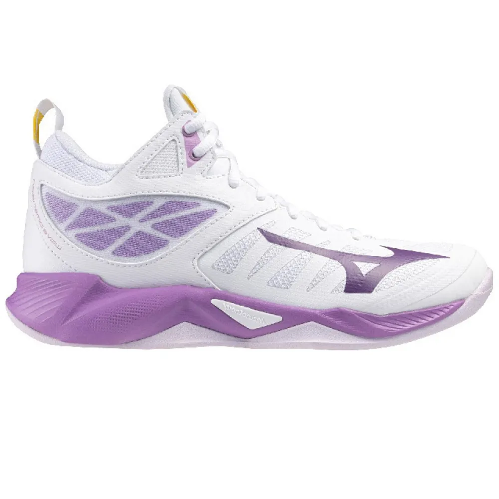 Mizuno Wave Dimension Mid обувь предназначена для стабильности и комфорта. Они созданы по образцу WAVE MOMENTUM, включая структуру пятки подошвы, которая обеспечивает плавные прыжковые движения, структуру кроссовка для удобной посадки и поддерживающие боковые панели. MIZUNO ENERZY в области пятки усиливает амортизацию, а устойчивость повышается благодаря выносным опорам в передней части подошвы.